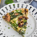 This Crustless Spinach Quiche is the perfect light breakfast! It is only 140 calories per slice. With only 20 minutes of hands on time you just can't beat this spinach quiche recipe.