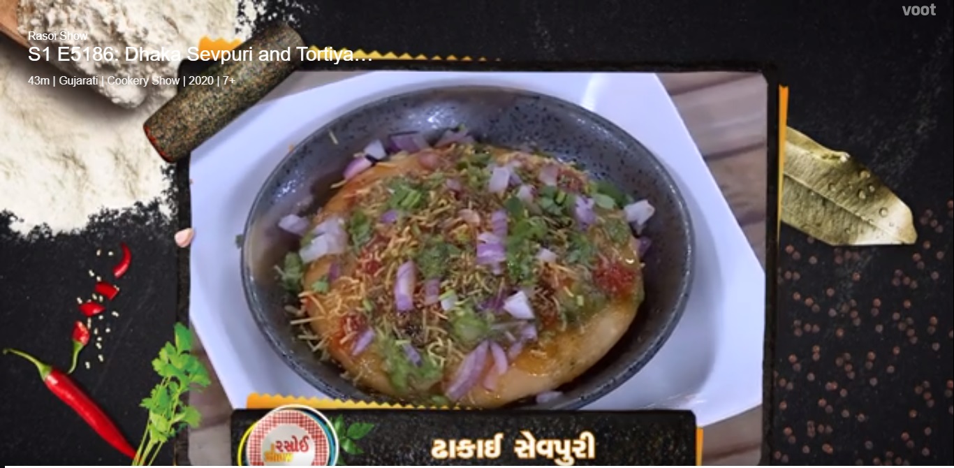 Take the dhakai puri, crush the opening. Add ragada, chutneys and other ingredients.