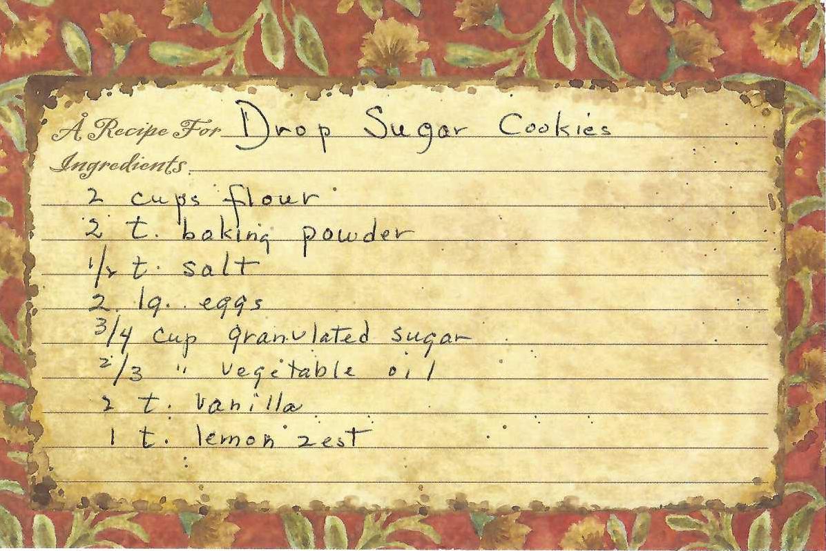 Drop 1 teaspoon cookie dough on oiled cookie sheets, 2" apart. Press dough flat. Dip small glass in water, then dip in sugar. Press lightly on dough. Bake at 400° for 8 minutes. Watch to ensure cookies are lightly browned. Store in tins covered tightly.