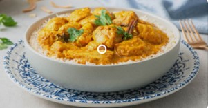 Meanwhile, prepare Jasmine rice using either water or coconut milk. Serve with warmed Naan bread.
