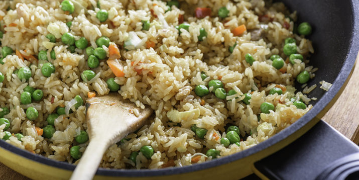 Healthy fried rice? Yes, it is possible. Skip the takeout and make your own easy fried rice at home! This recipe includes onion and peas, but you can customize and add in your favorite vegetables.