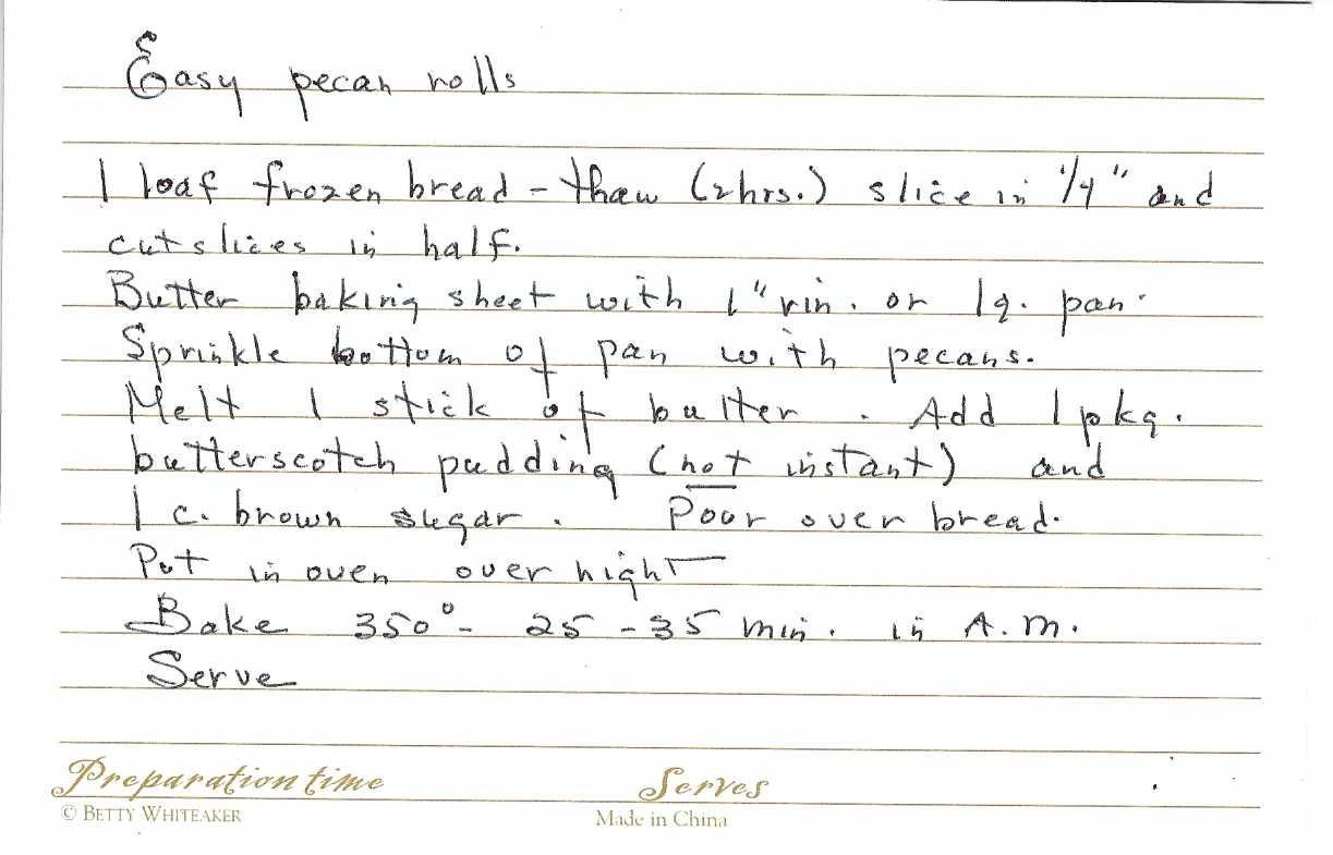 Melt 1 stick of butter. Add package of butterscotch pudding and brown sugar. Pour over bread. Put in oven overnight.