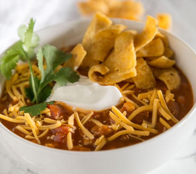 Easy Taco Soup - a hearty and comforting taco flavored soup that is ready in minutes. Top with your favorite toppings to make it even better!