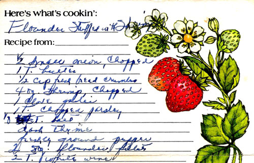 Flounder fillets stuffed with sauteed shrimp mixture.