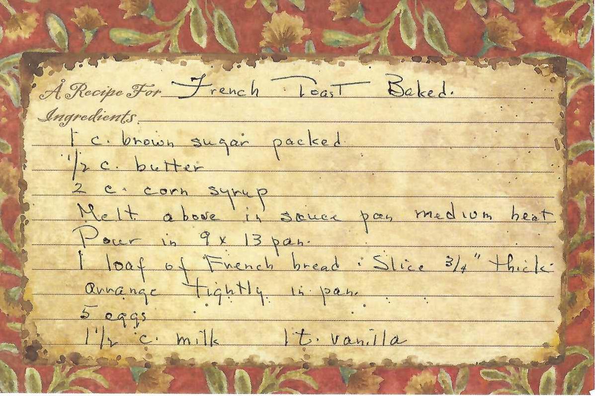Melt brown sugar, butter and corn syrup in a sauce pan over medium heat. Pour in 9x13 pan. Arrange French bread slices tightly in the pan.