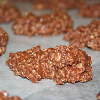 Line two baking sheets with waxed paper. In a large saucepan, stir together cocoa, sugar, milk and butter. Boil for 5 minutes, then remove from heat. (Note: boiling time is CRUCIAL...too long and they will turn out dry and crumbly. Not long enough, and they won't set up at all.) Stir in vanilla extract, coconut and oats. Combine well. Drop by tablespoonfulls onto prepared cookie sheets. Refrigerate 1 hour or until set. Keep refrigerated. Makes 3-4 dozen cookies.