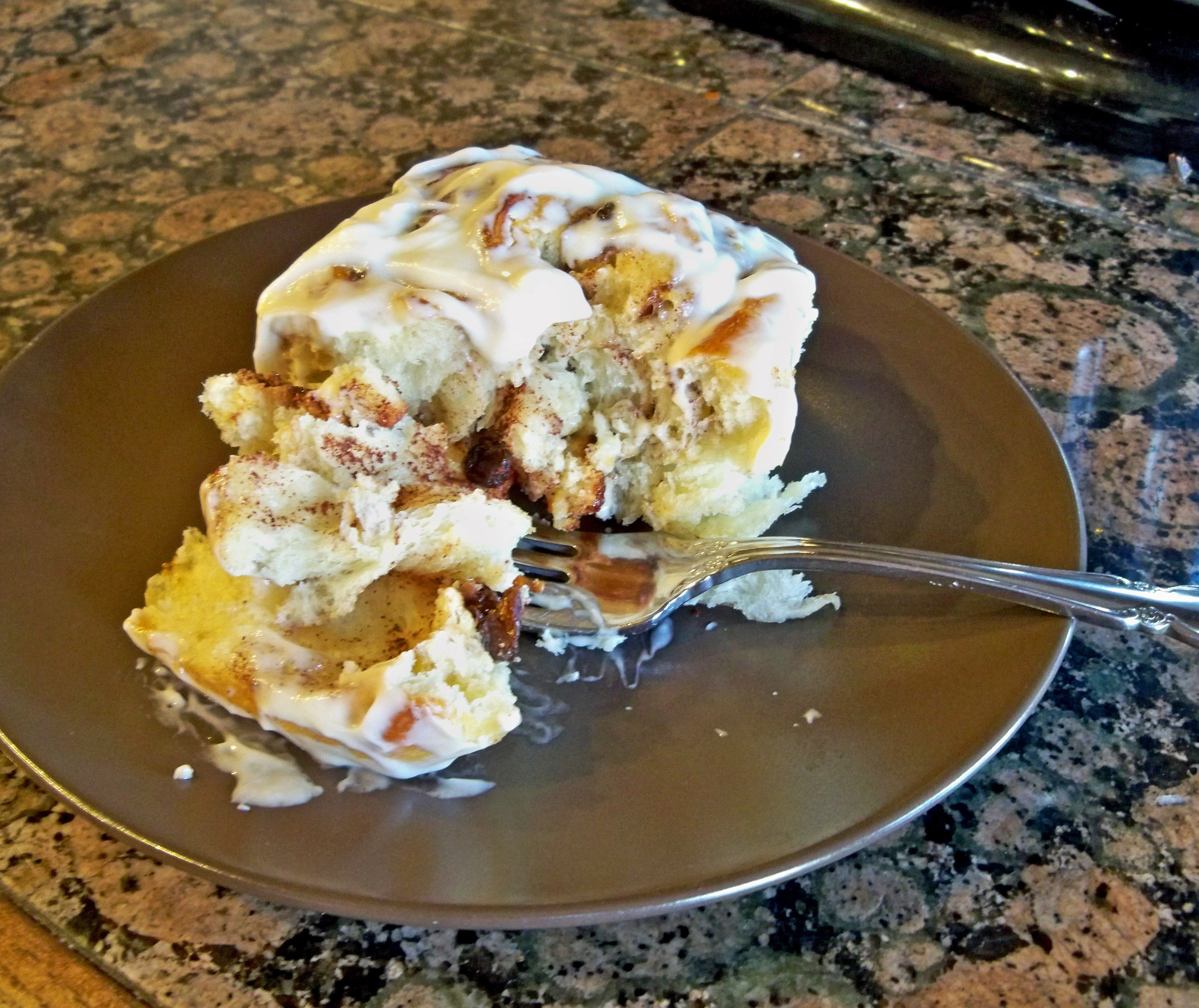 3. Position oven rack in the middle of the oven and heat to 400 F. Brush buns lightly with beaten egg (mixed with teaspoon of water). Bake until rolls are golden brown and a toothpick inserted into center of a roll comes out clean, about 20 minutes. (While rolls are baking, mix up frosting by beating together cream cheese, butter, and vanilla extract; then gradually add confectioners' sugar and mix thoroughly). Let rolls cool slightly in pan on a wire rack, then spread with frosting while they are still warm. Serve immediately.