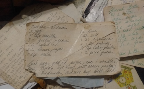 Beat egg, add oil, sugar, zucchini, vanilla. Mix lightly. Sift flour, salt, baking powder, soda, cinnamon, nutmeg. Mix well. Add flour, mix to egg mixture a little at a time until blended. Mix. Add nuts by hand. Bake in 2 greased loaf pans at 325 degrees for 1 hour. Cool for 10 min.