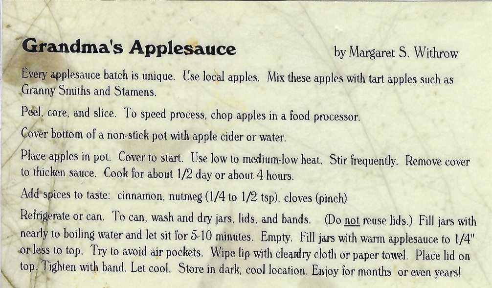 Every applesauce batch is unique. Use local apples. Mix these apples with tart apples such as Granny Smiths or Stamens.