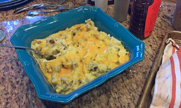 Creamy mashed potatoes with green chiles and cheddar cheese.