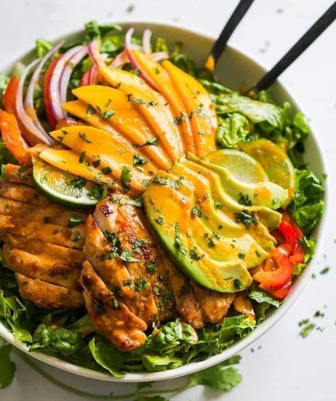 Let the chicken cool for a few minutes before slicing/cubing it up for the salad.