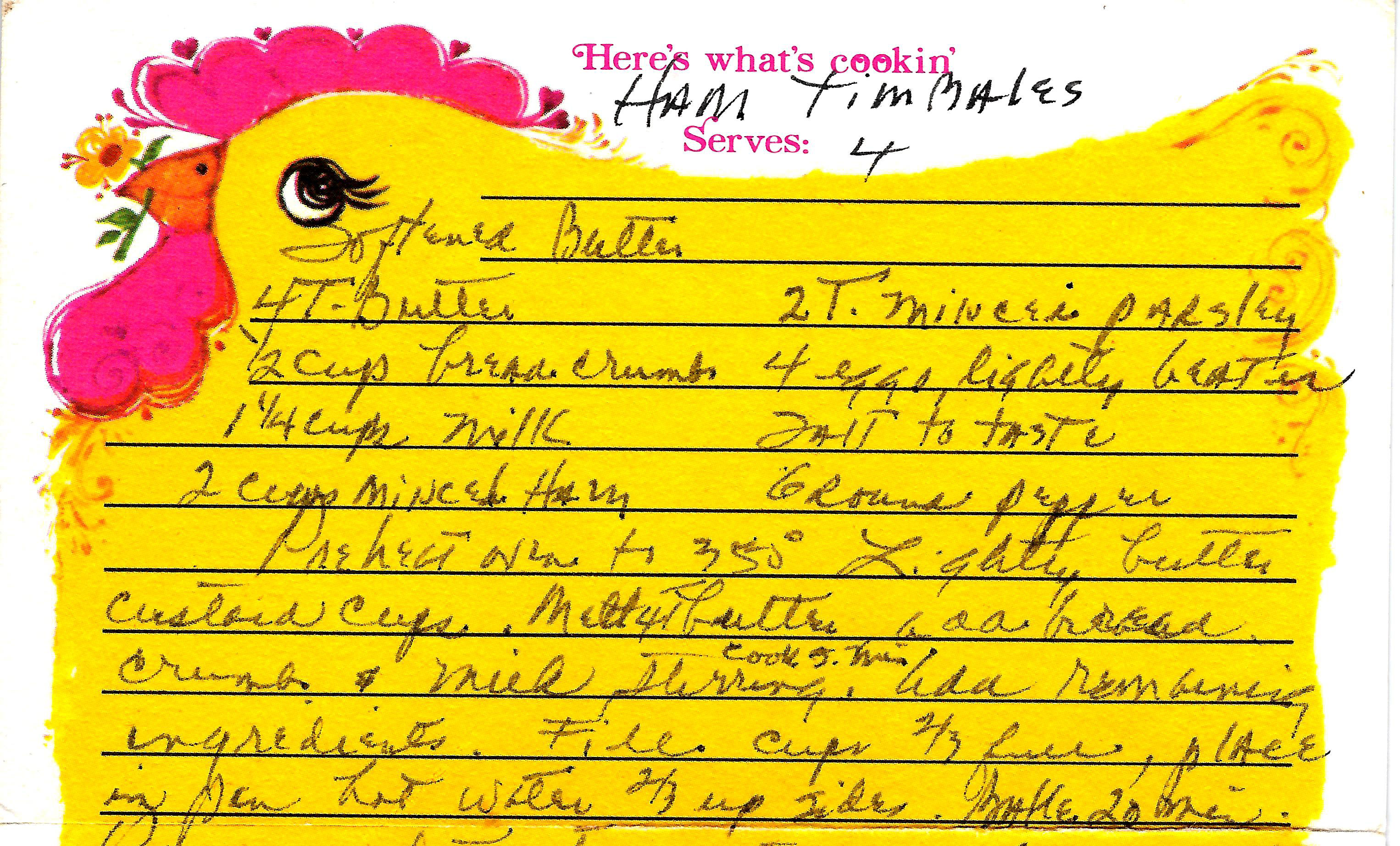 For Chicken Variation of Timbales: Use 2 cups of chicken, and add 1/2 teaspoon of tarragon; serve with lemon sauce.