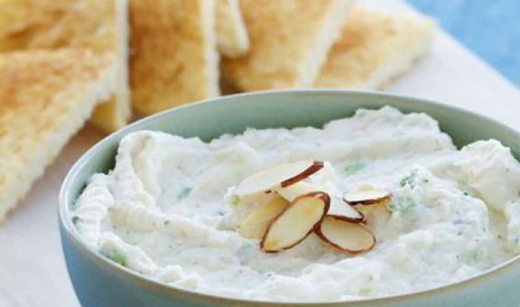 Mix all ingredients except crab meat and almonds in a medium bowl until well blended. Fold in crab meat.