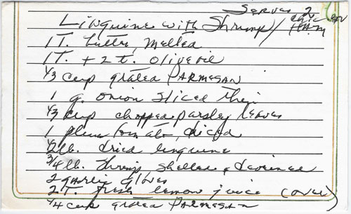 Linguine tossed with shrimp (or chicken or ham) and seasonings.