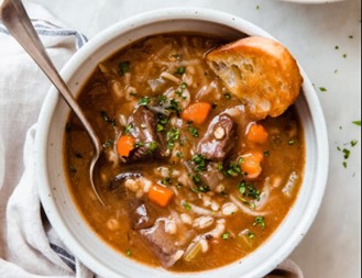 Add all remaining ingredients, except parsley. Bring soup to a boil. Reduce heat to medium-low. Cover and simmer for 1-1/2 hours, until beef is very tender.