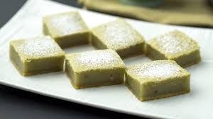 1 box mochiko sweet rice flour 2 tsp. baking powder 1/2 tsp. kosher salt 2 cups sugar 1 Tbs. matcha powder 4 large eggs 1 can coconut milk 1 can evaporated milk 1 stick unsalted butter, melted and cooled