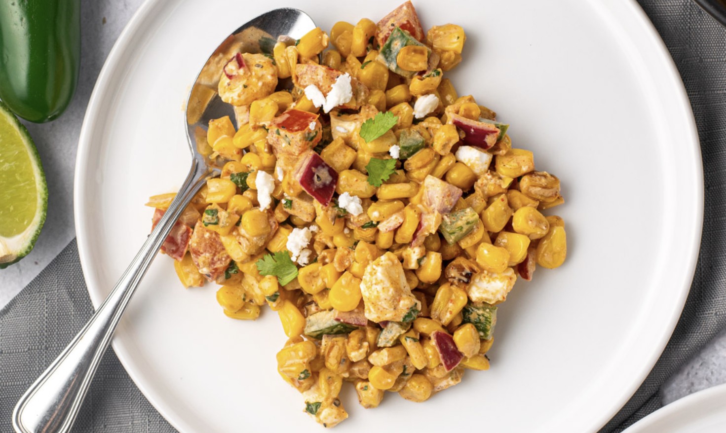 An off-the-cob style salad that is a version of the popular Mexican street food, Elotes.