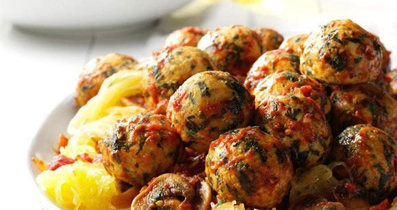 Momma's Chicken Florentine Meatballs over Spaghetti Squash