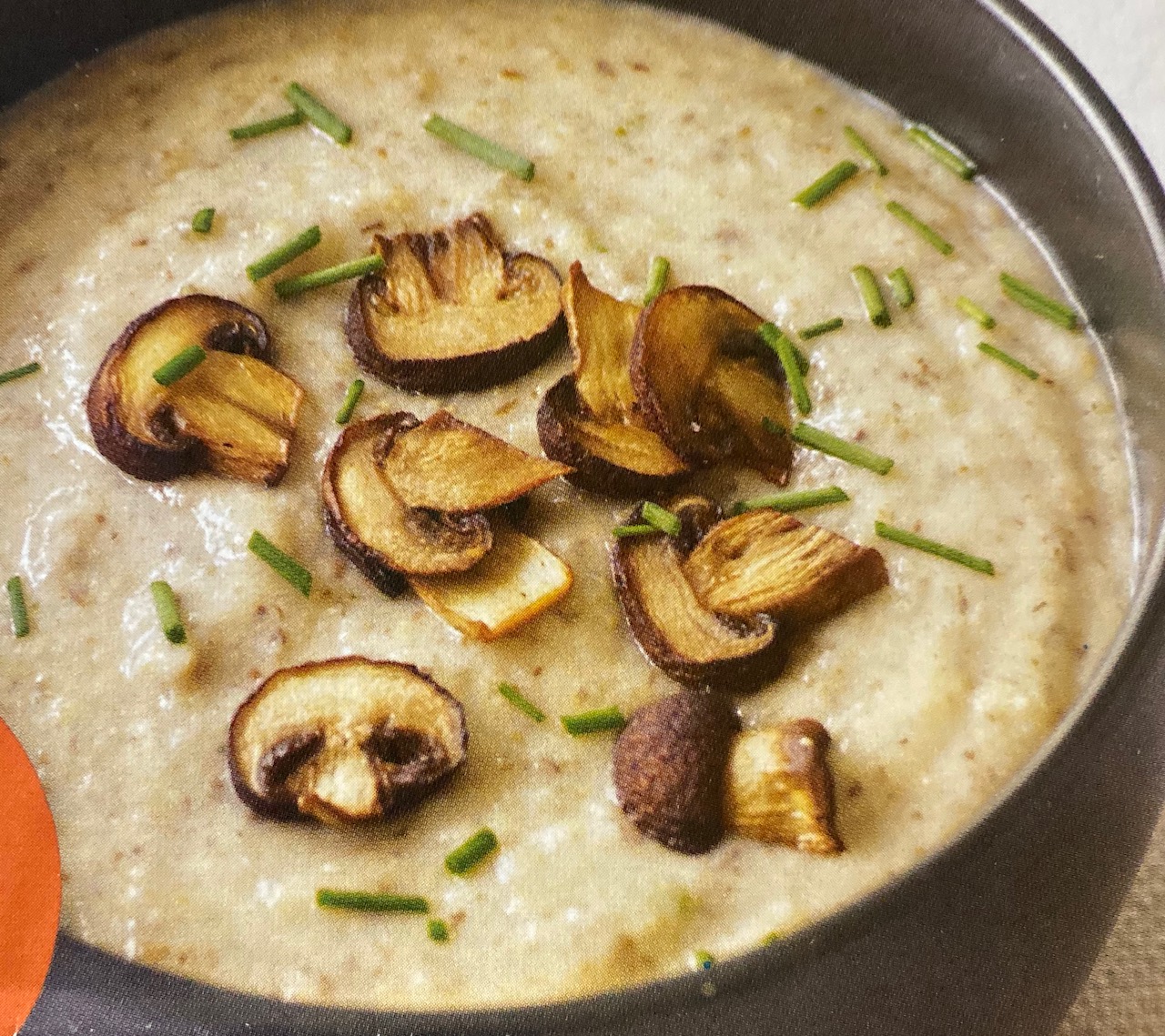 Creamy mushroom soup made with Greek yogurt and roasted mushrooms.