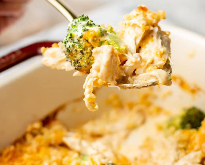 Combine the broccoli and chicken in a 9-x-13-inch buttered baking dish. Evenly pour the cheese sauce over it and stir around to incorporate all ingredients. Sprinkle remaining cup of sharp cheddar cheese over top, then cover with panko or Ritz cracker crumbs.