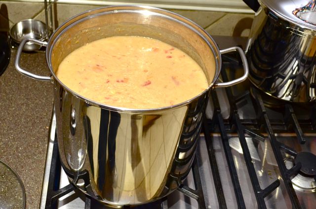 This recipe makes about 2.5 gallons of soup. The soup freezes well. The recipe can easily be cut in half.
