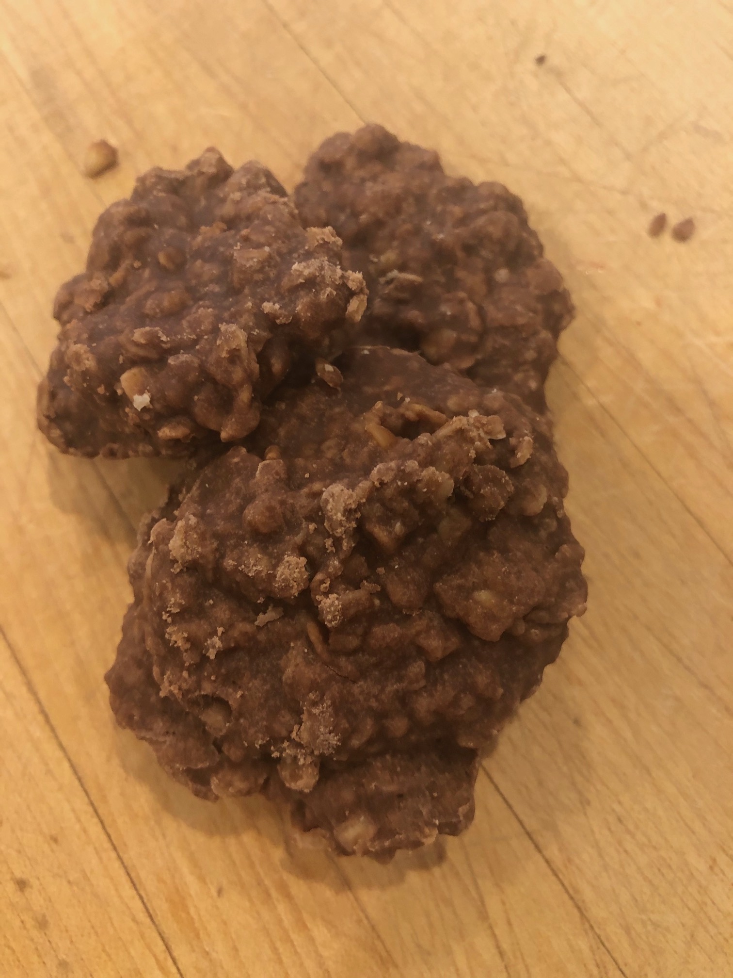 A super-fast, super easy to make cookie made with chewy oatmeal, rich cocoa and peanut butter. They are perfectly fudgy and always just too good to resist; a childhood favorite that I\'m still making all the time.