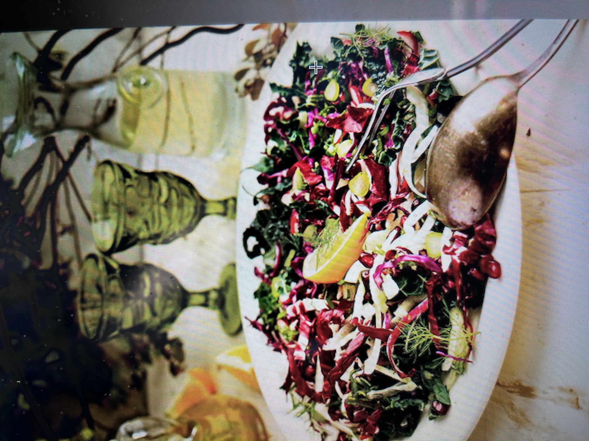 1. Chop the radicchio and kale — the amount really varies based on how many people you are making the salad for, but use your judgement same as you would cutting up romaine, etc. You want it to be about two thirds kale and one part radicchio so it doesn’t get too bitter, unless you really love radicchio then feel free to go half and half.