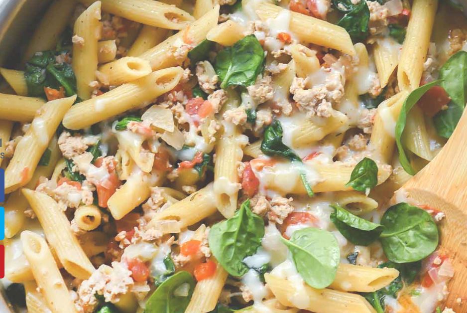 One Pot Penne Pasta with Turkey and Spinach