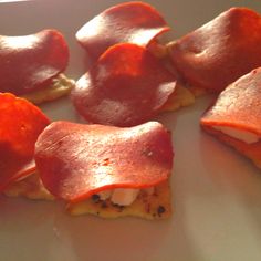 Then put one piece of cheese and one slice of pepperoni on the same cracker.