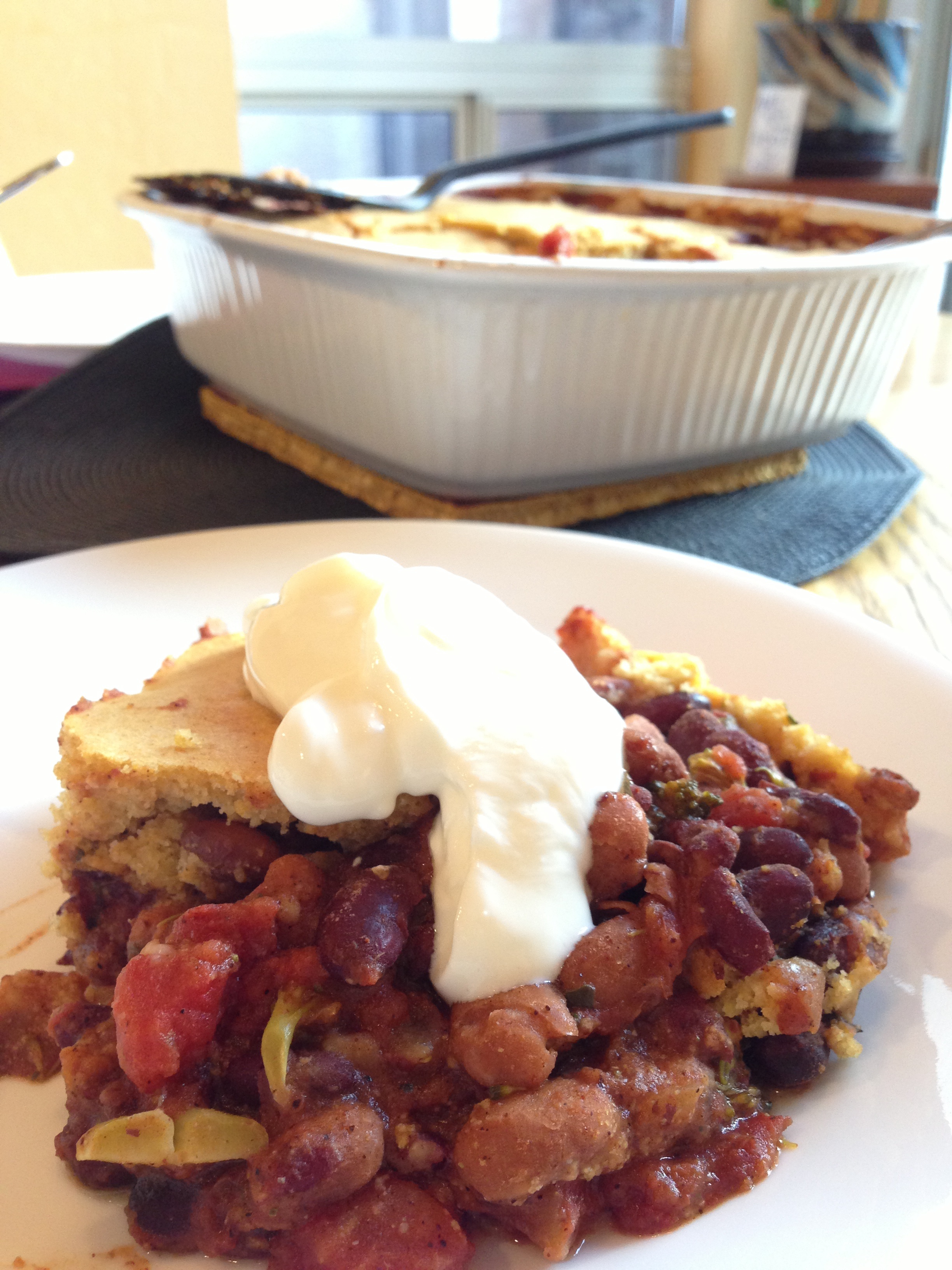 I highly recommend garnishing your tamale pie with plain greek non-fat yogurt or lite sour cream, avocado slices, salsa/peco de gallo/ hot sauce. It really compliments the dish and makes for a very satisfying meatless meal.