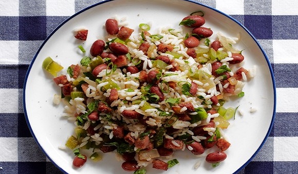 5. Fluff rice and allow to cool slightly. Add beans and rice to vegetable-sausage mixture and toss with vinaigrette. Add scallions and parsley and toss again. Season with salt and pepper to taste. Serve cold or at room temperature, with hot sauce on the side.
