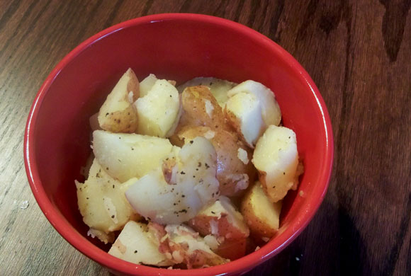 Young red potatoes, lightly boiled and tossed with butter, salt and pepper.