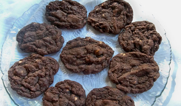 Cream butter and sugar together. Add eggs and vanilla; beat well. Combine flour, cocoa, baking soda, and salt; gradually blend into creamed mixture. Stir in chips. Drop by teaspoonfuls onto ungreased cookie sheet. Bake at 350° for 8-9 minutes. Do not over bake. Cool until set, about 1 minute. Remove from cookie sheet. Cool completely on wire rack. Makes 4 & 1/2 dozen cookies.