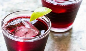 Iced fruit drink made with hibiscus flowers and allspice berries.