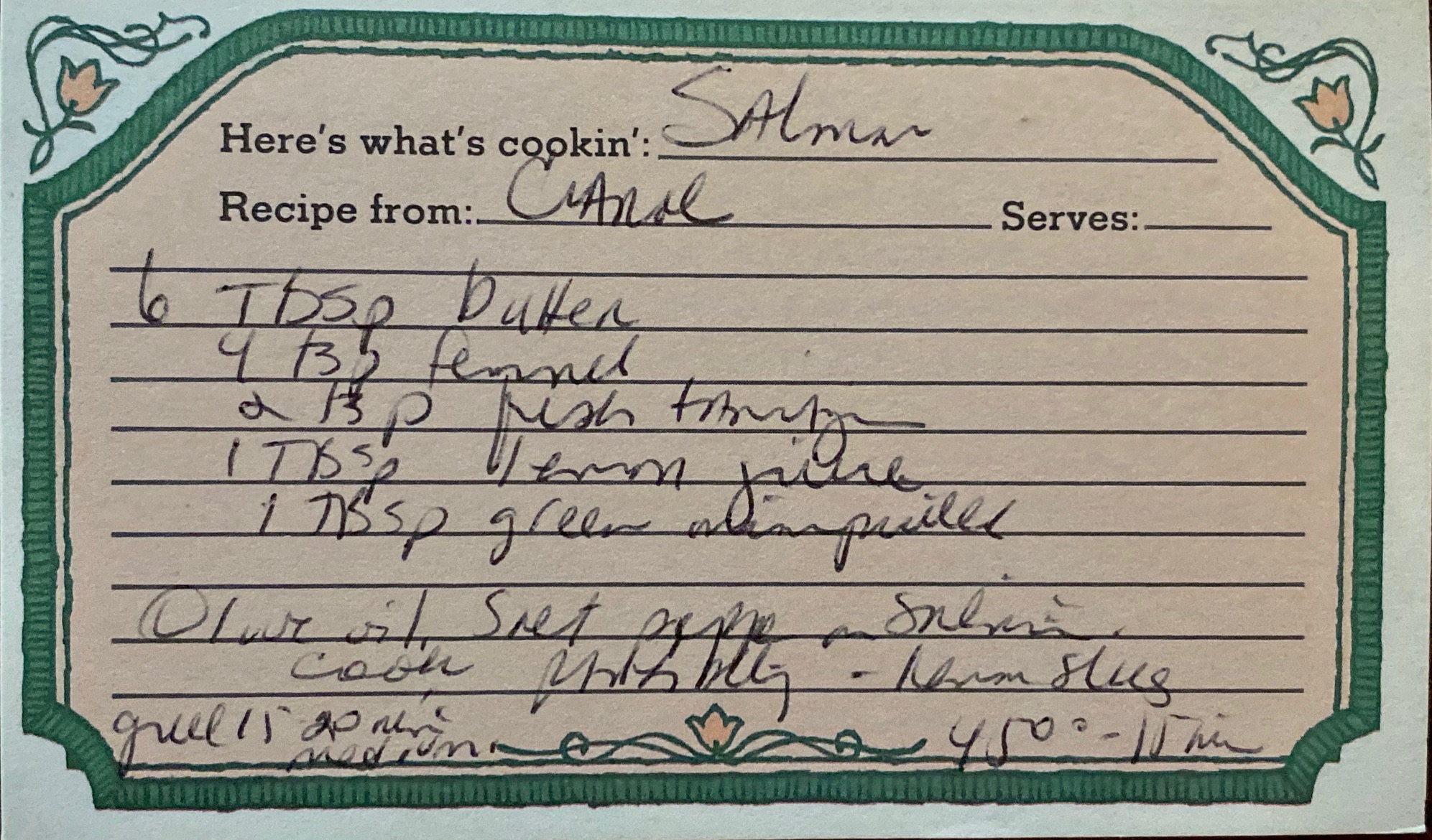 Salmon, grilled or roasted, served with fennel-tarragon butter sauce.