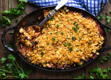 Bake in oven or cook in slow cooker; ground beef, potatoes, vegetables, rice and tomato soup cooked into a delicious casserole.