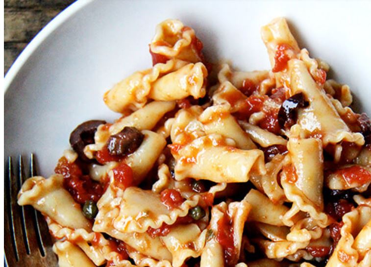 Tomato sauce with capers, olives, anchovies and seasonings, served over pasta.