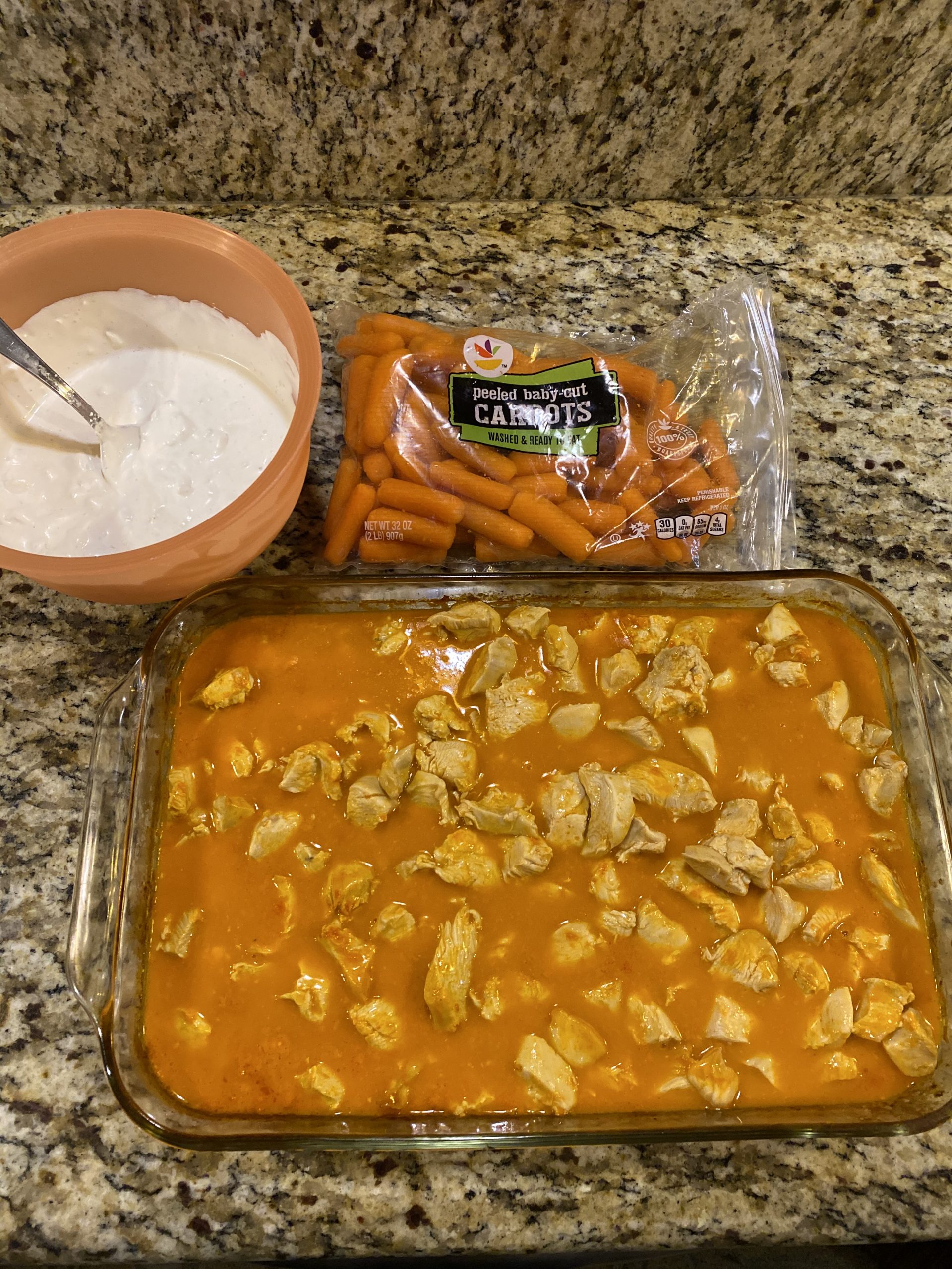 At our grocery store, I get the large pack of chicken and the guys at the meat dept. will chop it up into cubes while I shop. This saves on prep time! For the sauce, there are two varieties of Sweet Baby Ray's Buffalo. There is mild and then the regular. Domenic prefers the mild which is a little less spicy. Both sauces are delicious though so either will work just fine.