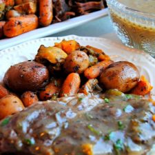 Savory pot roast with gravy made in the crockpot or slow cooker; gluten-free, Paleo, Whole30, AIP friendly.