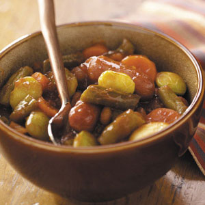 In a 3-qt. slow cooker, combine all ingredients. Cover and cook on high for 4-5 hours or until vegetables are tender.