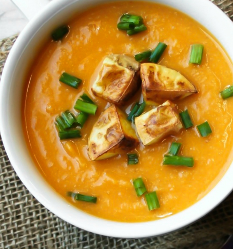 When the soup has about 10 minutes left, chop up a couple more yukon gold potatoes into 1/2 inch pieces and broil them until golden brown (5-10 mins) and garnish the soup with them. I love the texture it added. Top with green onions and serve