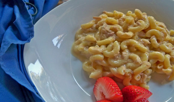 Bring 4 cups of water to boil in saucepan. Add macaroni noodles and boil for 10 minutes. Remove from heat; drain noodles and return to saucepan. Stir in butter, splash of milk, and Velveeta; cook and stir over low heat 'til cheese is melted. Add tuna and cook 3-5 minutes longer to allow flavors to blend.