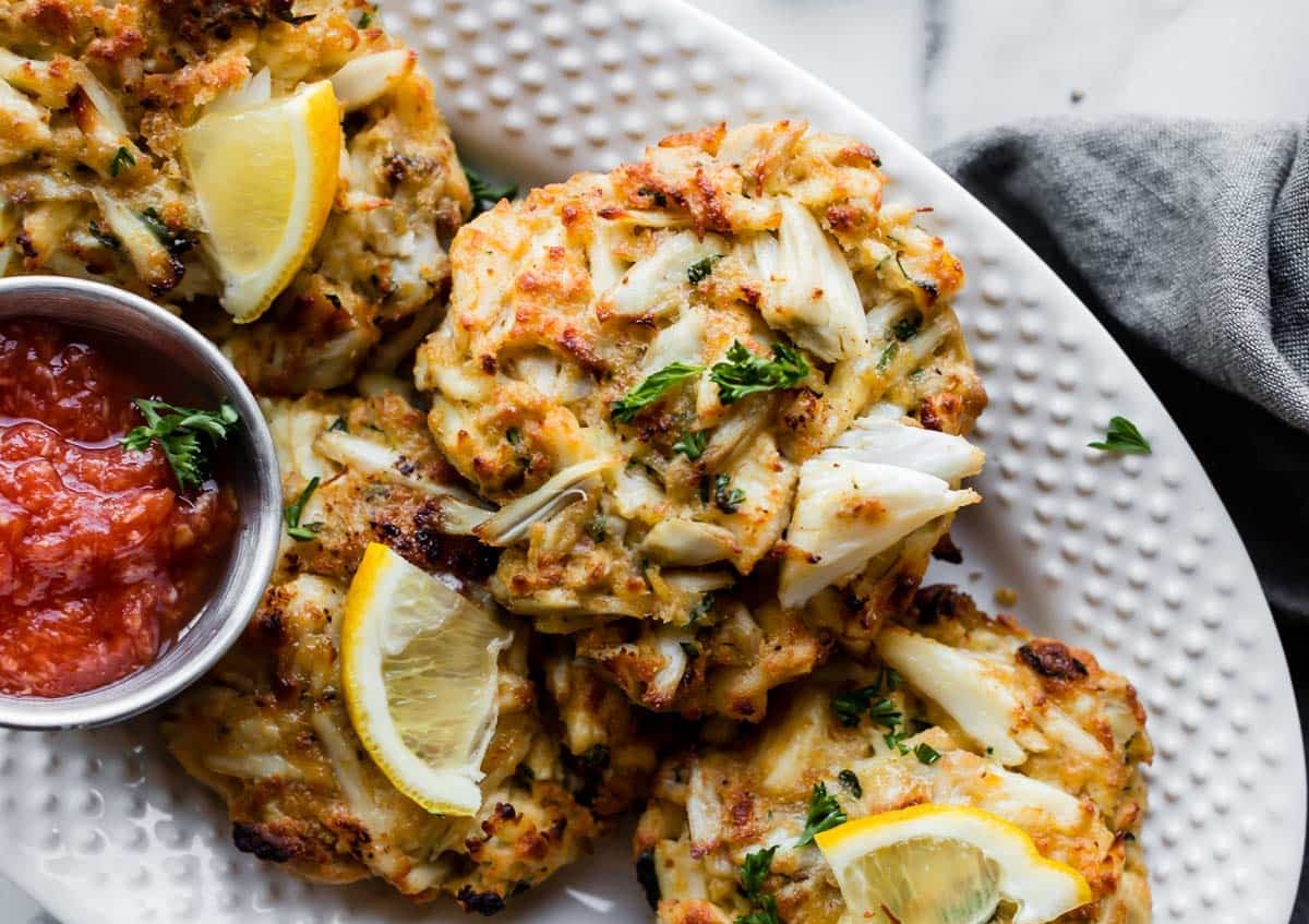 Maryland crab cakes full of lump crab flavored with lemon, parsley and Old Bay Seasoning; a favorite of best friend Whitney.